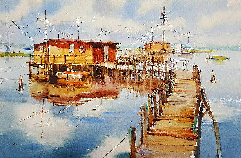 جالب این است که نقاشی با آبرنگ غیر قابل پیش بینی است و آب است که در این رنگ ها تصمیم می گیرد به کدام سمت حرکت کند.