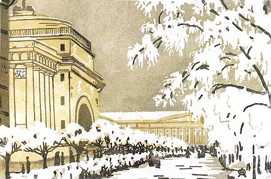 در سال 1900، Ostroumova فارغ التحصیل از آکادمی، متخصص در گرافیک، و در همان سال به هنر گروه Mir Iskusstva در سن پترزبورگ پیوست. در سال 1901، او اولین مجموعه ای از چوب را با حوضچه های شهر سن پترزبورگ، که توسط سرگئی دیگیلوف دستور داده بود، تولید کرد.