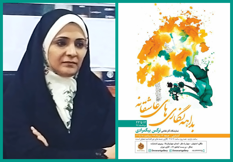 بیگمرادی متولد 1359 کارشناسی ارشد نقاشی و فوق ممتاز خوشنویسی است. تعداد آثار به نمایش درآمده در این نمایشگاه 30 اثراست.