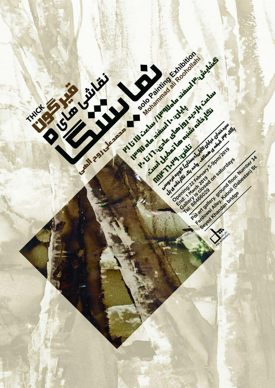 به گزارش روابط عمومی مرکز تجسمی حوزه هنری، این نمایشگاه که نگاهی است به طبیعت با تکنیک قیر و اسکراچ تا ۱۰ اسفندماه ادامه خواهد داشت و علاقهمندان جهت بازدید از آثار میتوانند در روز افتتاحیه از ساعت ۱۷ الی ۲۱ و روزهای عادی از ساعت ۱۶ الی ۲۰ به گالری پل واقع در سیدخندان، ابتدای خیابان کابلی (دبستان)، کوچه فردوسی، پلاک ۳۴، طبقه همکف مراجعه نمایند.