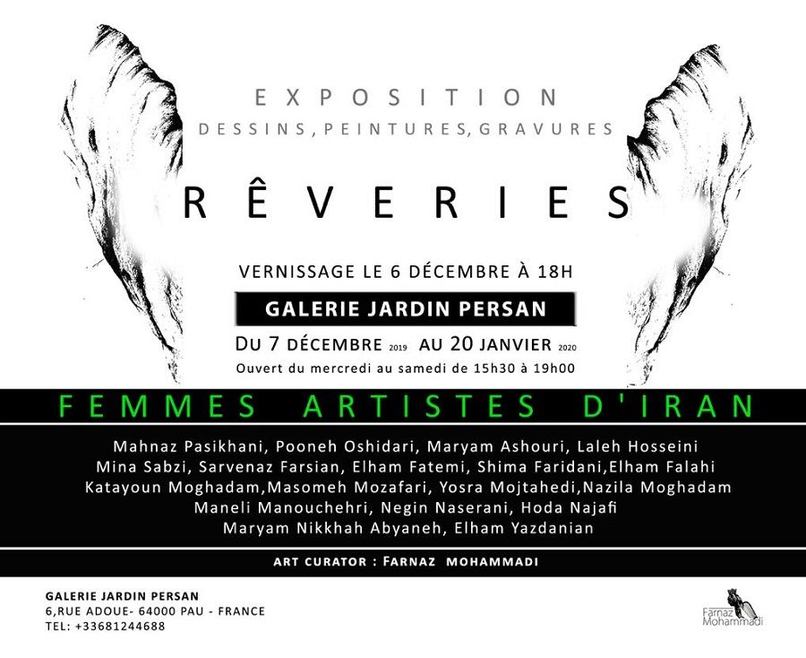 نمایشگاه Reveries از تاریخ 7 دسامبر آغاز شده و تا 20 ژانویه در گالری jardin person  فرانسه ادامه دارد.