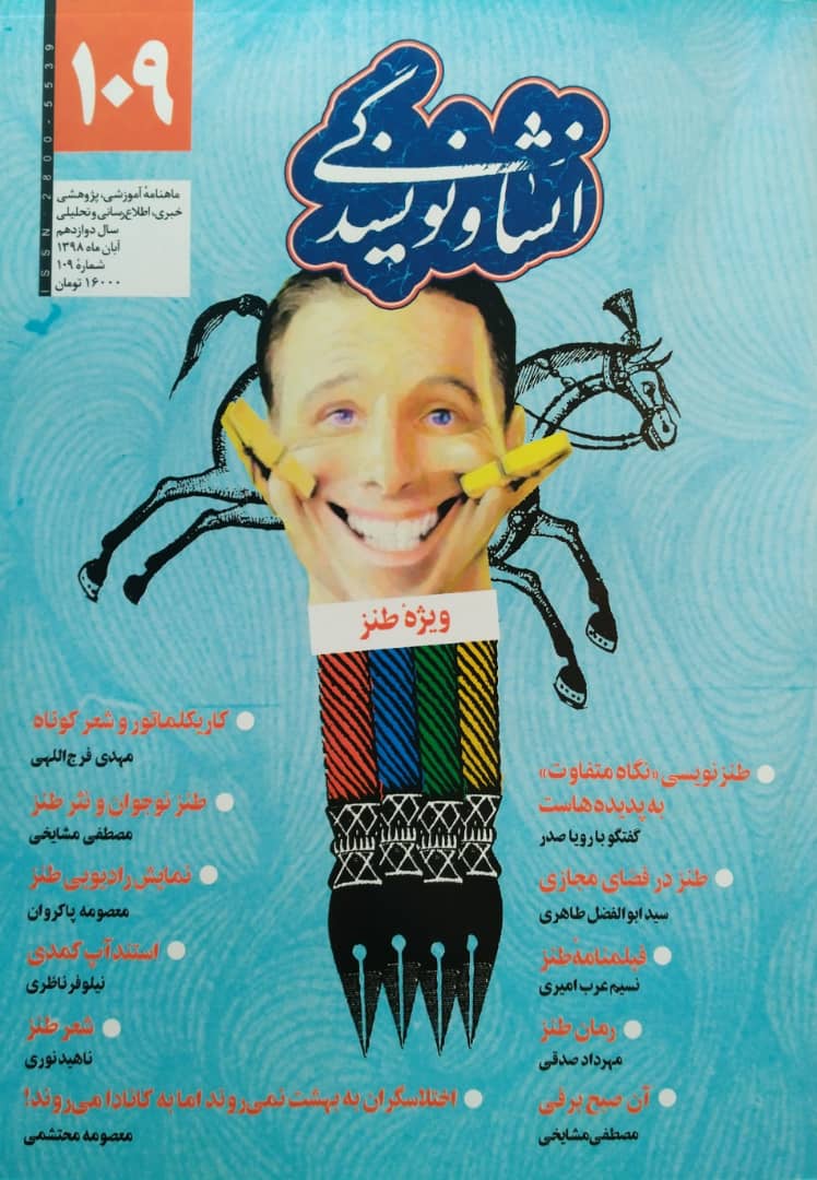صد و نهمین شماره ماهنامه آموزشی، پژوهشی، خبری، اطلاعرسانی، تحلیلی انشا و نویسندگی، ویژه طنز به دبیری فرزانه مصیبی منتشر شد.